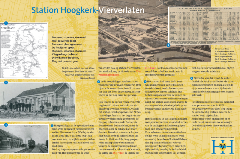 De Historische Vereniging Hoogkerk heeft via Sterk Hoogkerk € 8.000,- ontvangen om informatieborden te plaatsen bij historische plekken in het dorp — zoals bij het vroegere treinstation Vierverlaten. En daar hebben we jullie hulp bij nodig!