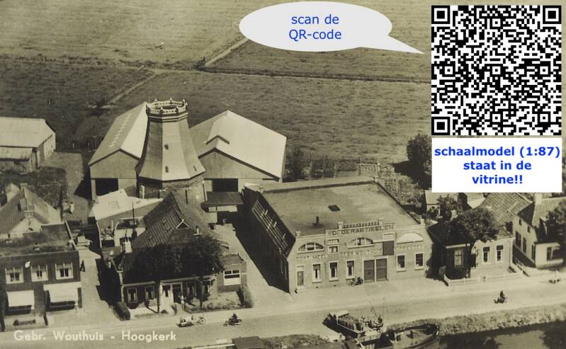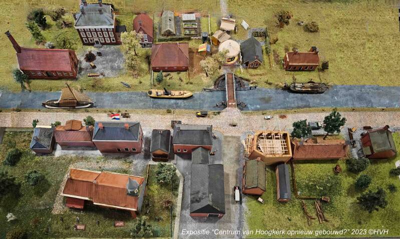 Bovenstaande schaalmodel, zoals ook alle gebouwen van het centrum van Hoogkerk zijn nog volop te bewonderen in de vitrines van de Historische Vereniging Hoogkerk in de Gabriëlflat.