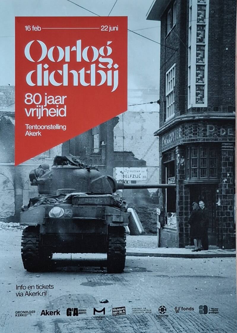 Gisteren, 15 februari, werd de tentoonstelling "Oorlog dichtbij 80 jaar vrijheid" na een welkomst-woord van Patty Wageman (directeur van de groninger kerken) werd de expositie geopend door het ensemble Rembrandt Frerichs & De Staal-meesters middels een openingsconcert geïnspireerd op “Oorlog Dichtbij en 80 jaar vrijheid”, omringd door een toespraak met treffende woorden van Erik Ader (oud ambassadeur en auteur) en Martin Hillenga (curator).
