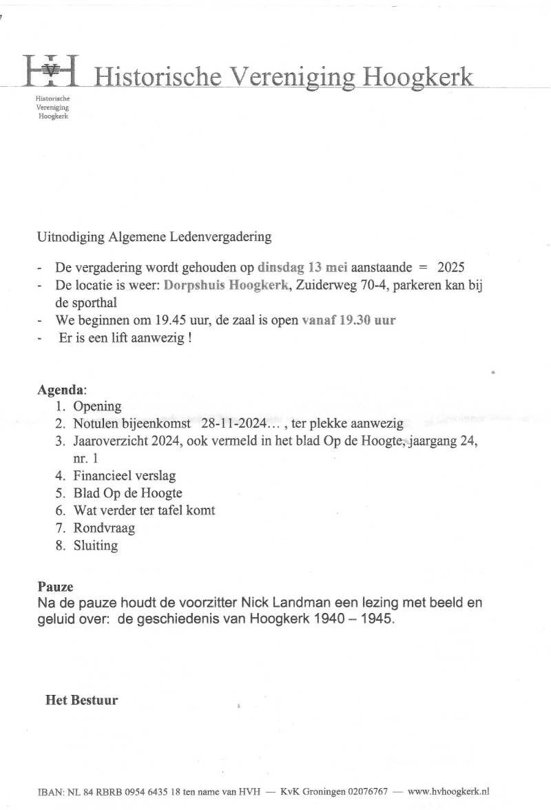 Dit voorstel is door een ruime meerderheid van de aanwezige leden aangenomen. De verhoging is niet alleen voor de kosten van ons blad "Op de Hoogte", maar alle kosten gaan omhoog: o.a. voor huur ruimte voor lezingen met daarbij koffie en koek, en de huur van het ‘Katshuis’, onze werk-en vergaderruimte in de Gabriëlflat. Hier is op donderdagochtend onze scangroep aan het werk; kom gerust een keer kijken! Op www.hvhoogkerk.nl kunt u de agenda inzien. Verder willen we extra sparen voor de uitgave van een boek in het kader van het 25 jaar bestaan van onze vereniging in 2026.