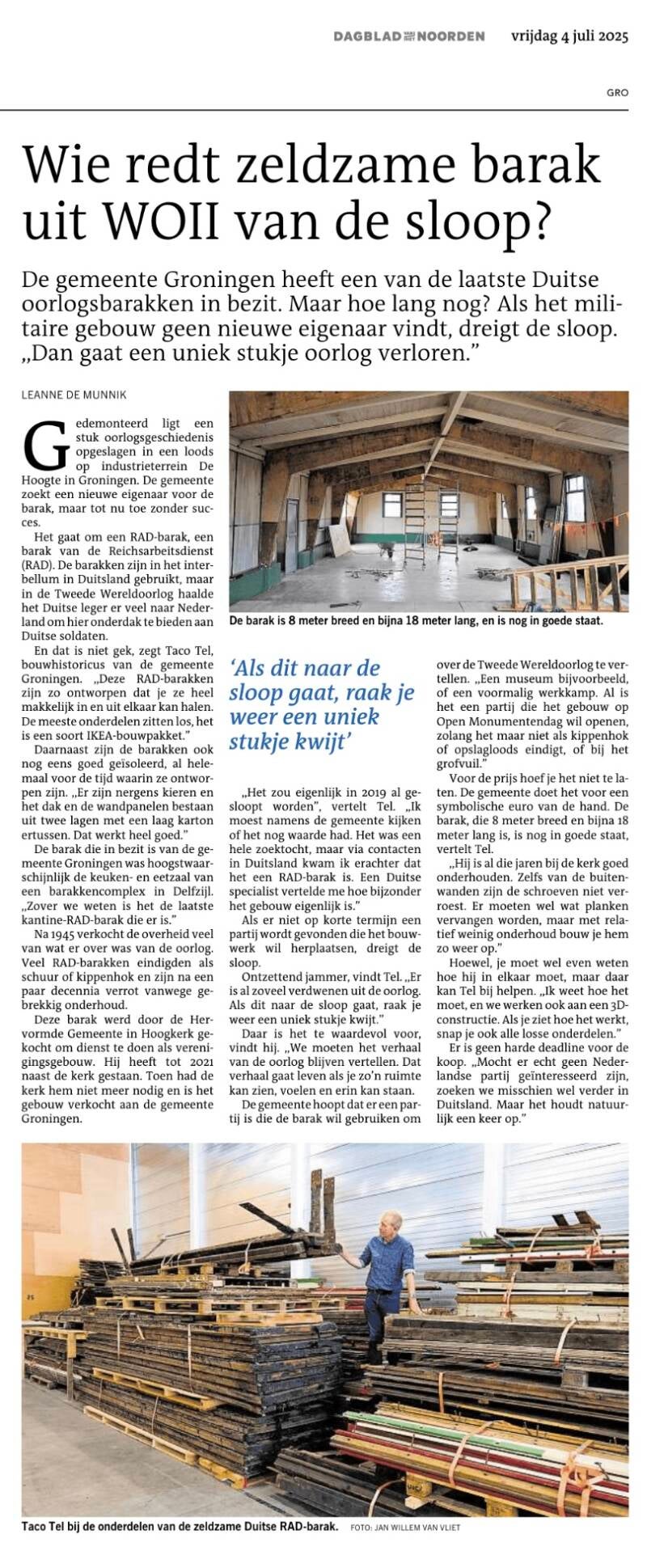 Gedemonteerde barak in Hoogkerk welke in 2024 weer wordt opgebouwd/gemonteerd in Delfzijl?