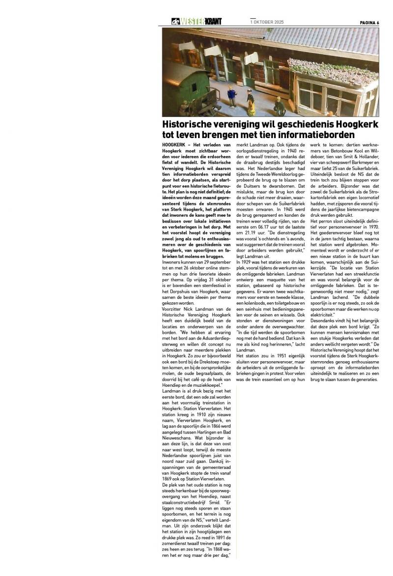 De historische vereniging Hoogkerk is Wiebe zeer dankbaar voor zijn jarenlange inzet. Zijn enthousiasme en expertise waren van onschatbare waarde voor het behoud van het lokale erfgoed.
