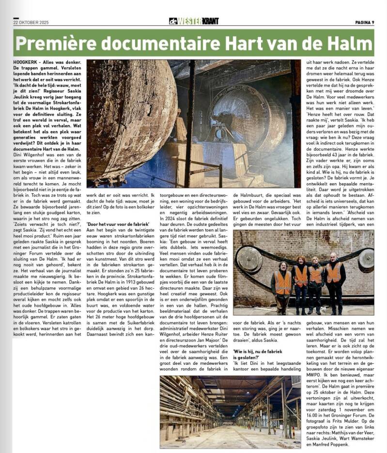 In Hart van De Halm vangt regisseur Saskia Jeulink het afscheid van de 112-jarige strokartonfabriek De Halm in Hoogkerk.