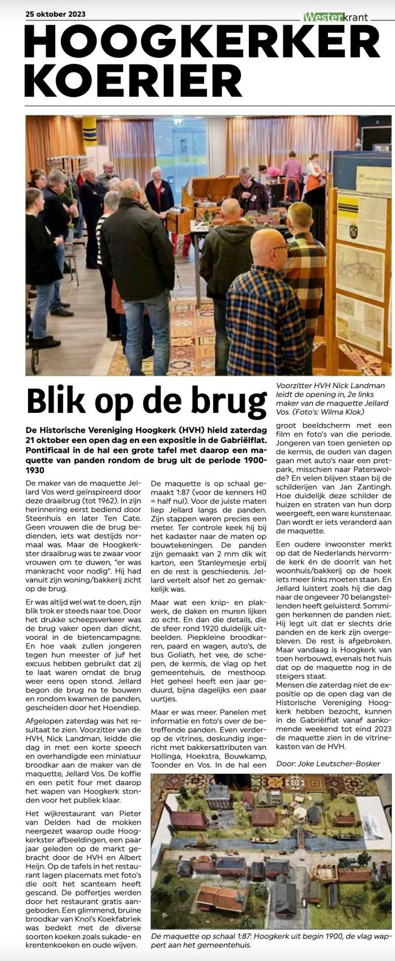 De miniatuurbouwer van de expositie "Centrum van Hoogkerk opnieuw gebouwd?"(Jellard Vos) heeft er nog een stukje bijgebouwd, namelijk de voorste gebouwen met het scheepslaad/los-station alsmede de zgn. over-dekte transportbrug van de N.V. P.R.Roelfsema Oliefabriek aan het Hoendiep.