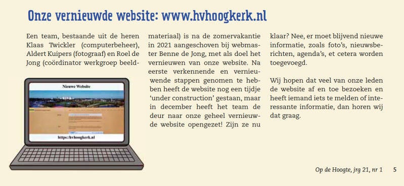 Onze vernieuwde website: www.hvhoogkerk.nl 5
